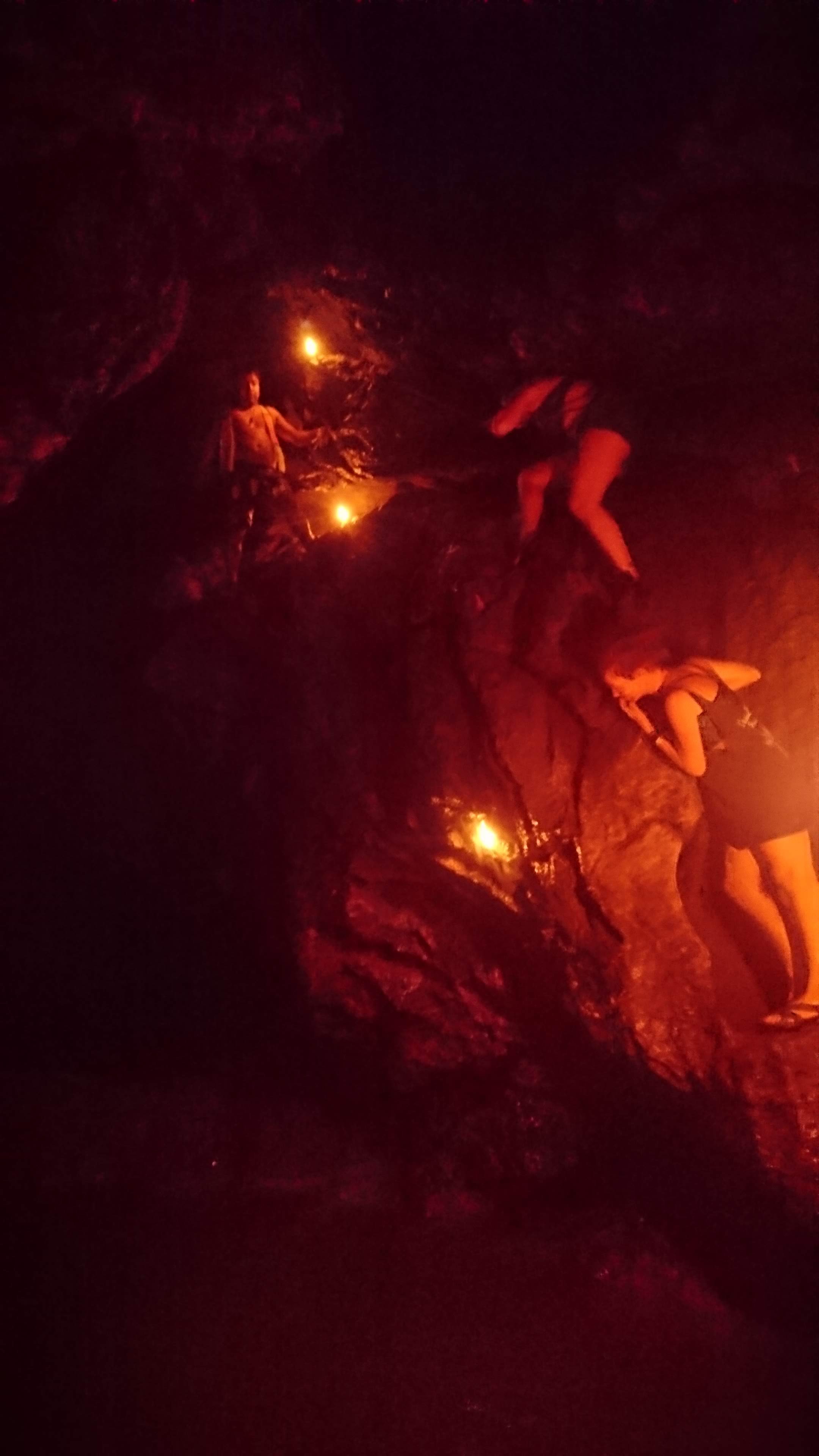 We took a guided tour of Semuc Champey. Our first stop was a cave with water running through it. On the way to the cave our guide painted everyone’s faces with a red fruit, I’m pretty sure I got a Rambo look. The cave itself was fun, wading through the water, climbing a small water fall (with a rope) and sliding through a small gap down into a pool a few meters below.